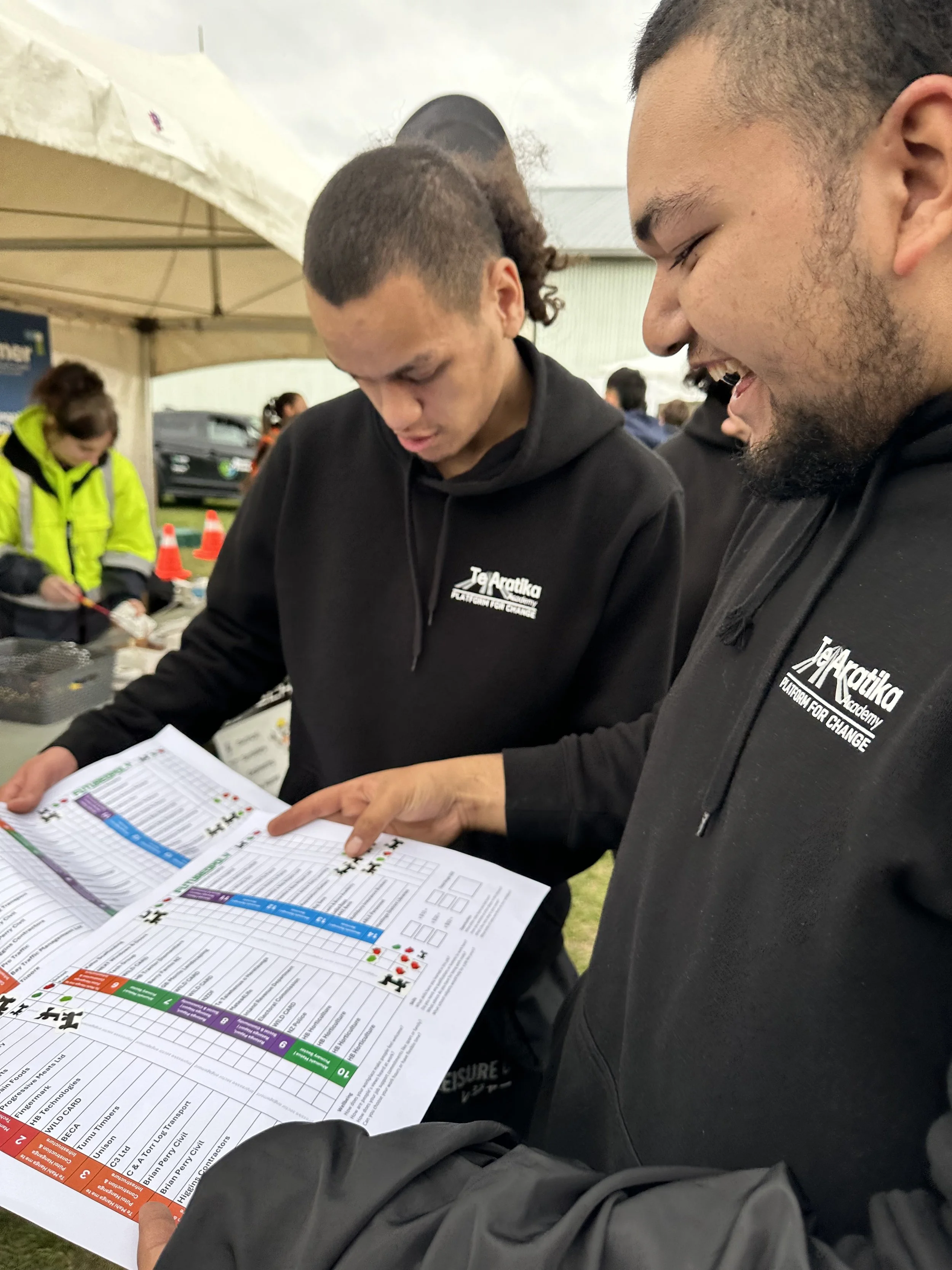We offer a unique education model for Māori and Pasifika youth in Years 9 -13, focusing on the New Zealand Curriculum, NZQA Qualifications and Vocational Certifications including Infrastructure Works. Our programmes are designed to equip taiohi with the skills, confidence, and cultural connection they need to succeed in their Te Aratika, their Right Path.
